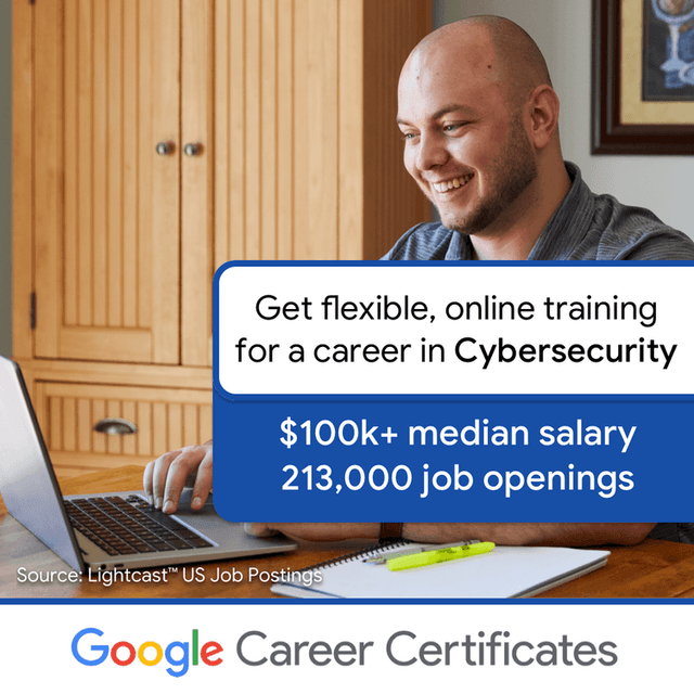 Qualify for in-demand jobs in 1 of 6 high-paying fields, with a Google Career Certificate